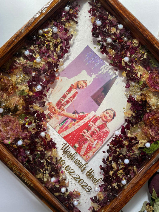 Beautiful Epoxy Resin Varmala Preservation in Wooden Frame
