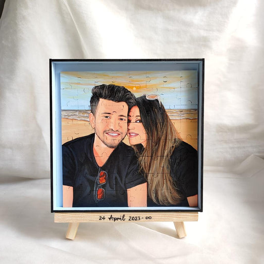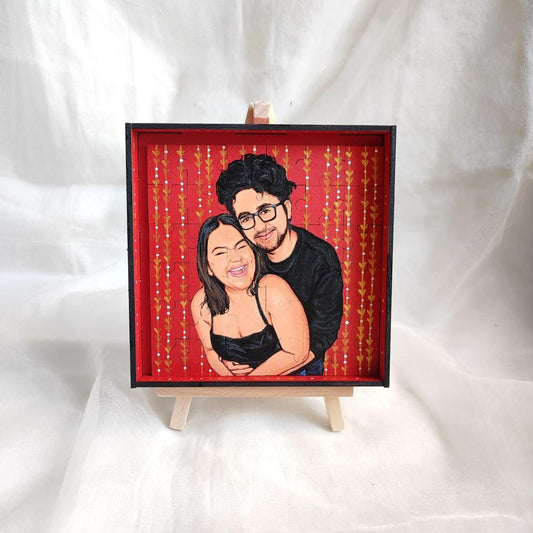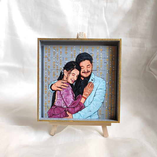 Pieces of Love: Artistic 6*6 Inch Hand-Painted Couple Puzzle with 36 Puzzle Pieces