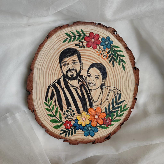 Shared Memories: 6-Inch Wooden Slice with Artistic Portraits and Background