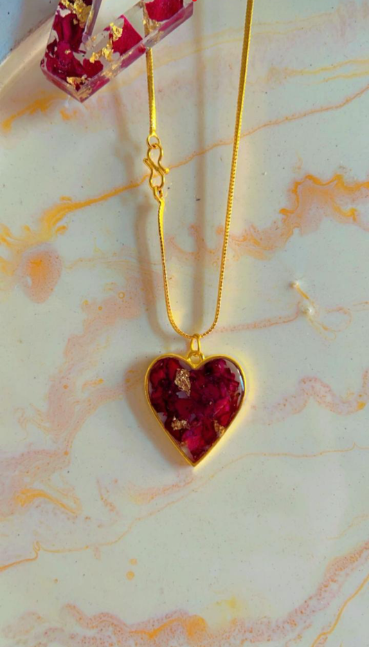 Crimson Heart Resin Pendant Necklace