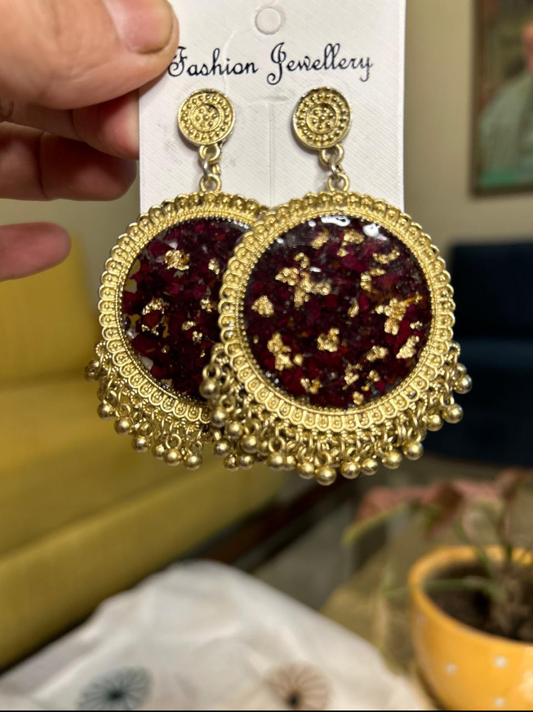 Crimson Bloom Jhumka Earrings