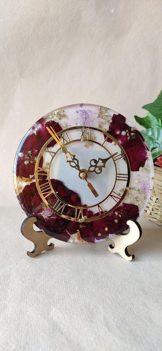 Bloom Timekeeper Preserved Flower Resin Table Clock