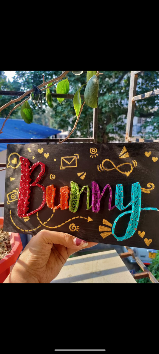 Rainbow Rhapsody: Expressive Name String Art Wall Hanging