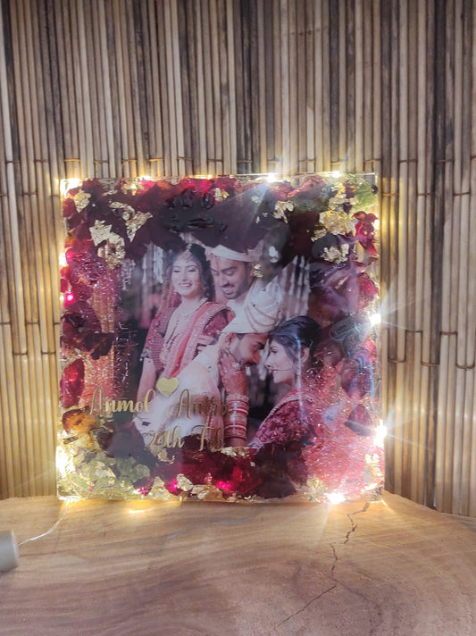 Glowing Romance Personalized Resin Wedding Flower Keepsake with Couples Picture