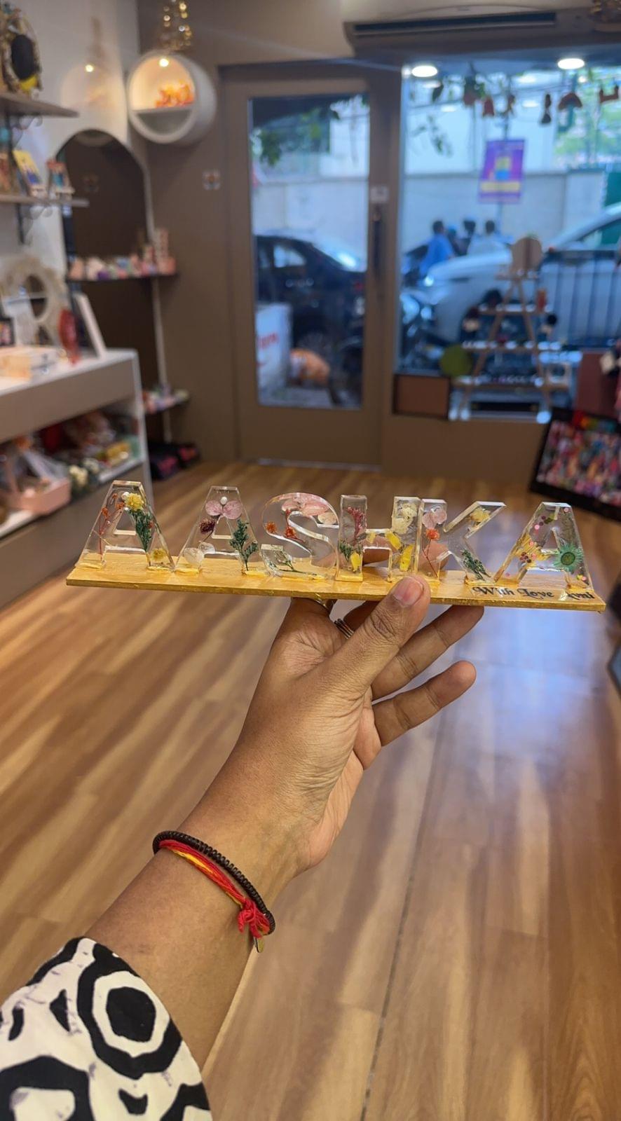 Blossom Signature is a unique and personalized dried flower resin name sign that captures the beauty of nature in a stunning display. Each letter is meticulously crafted with real dried flowers, carefully arranged to form a vibrant and eye-catching design.