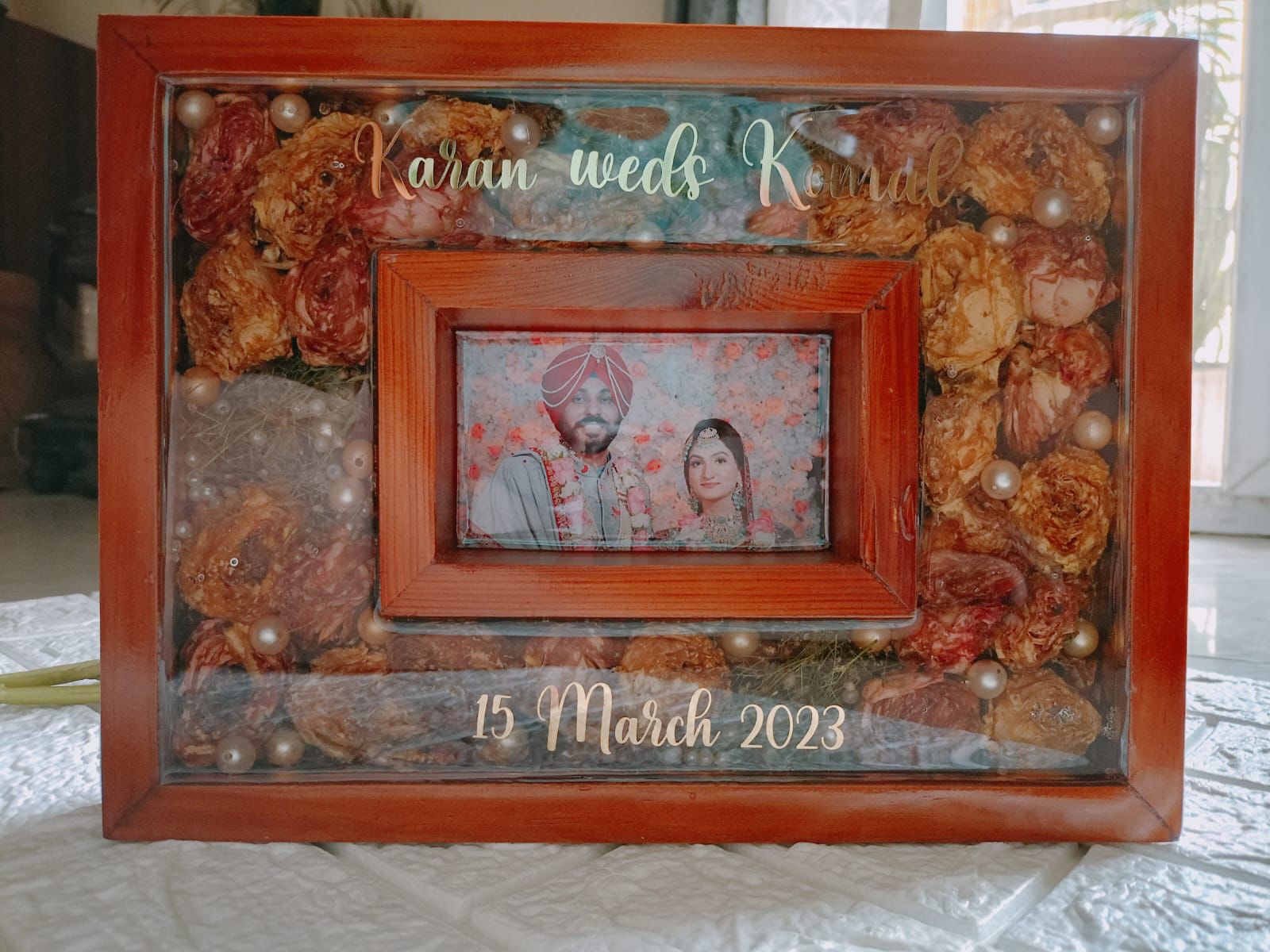Elevate your wedding memories with our Iconic Pearl Varmala Preservation. Each delicate pearl-adorned flower from your varmala is expertly preserved, capturing its timeless beauty and significance. Encased in a stunning display, this preservation piece exudes an air of elegance and sophistication.