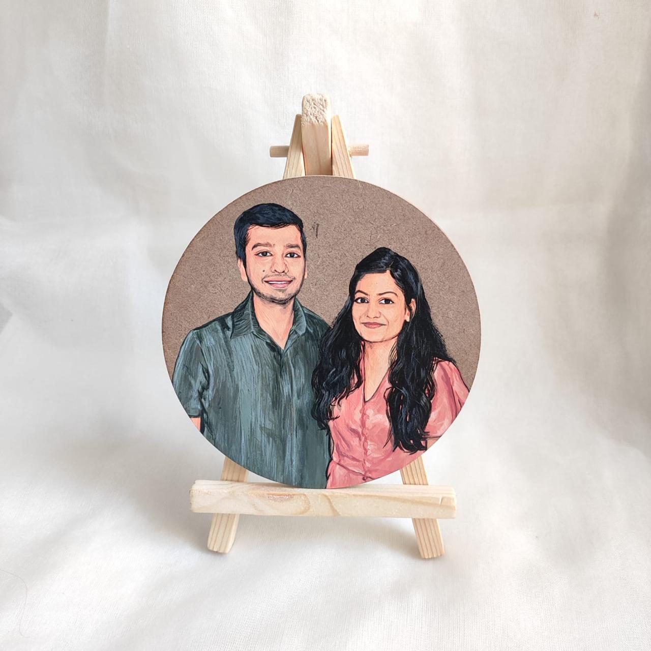 A hand-painted portrait delicately brought to life on a durable MDF canvas, merging timeless elegance with contemporary artistry.  "In every stroke, echoes of a story unfold. 'Echoes of Elegance' captures moments that transcend time on MDF's sturdy embrace."