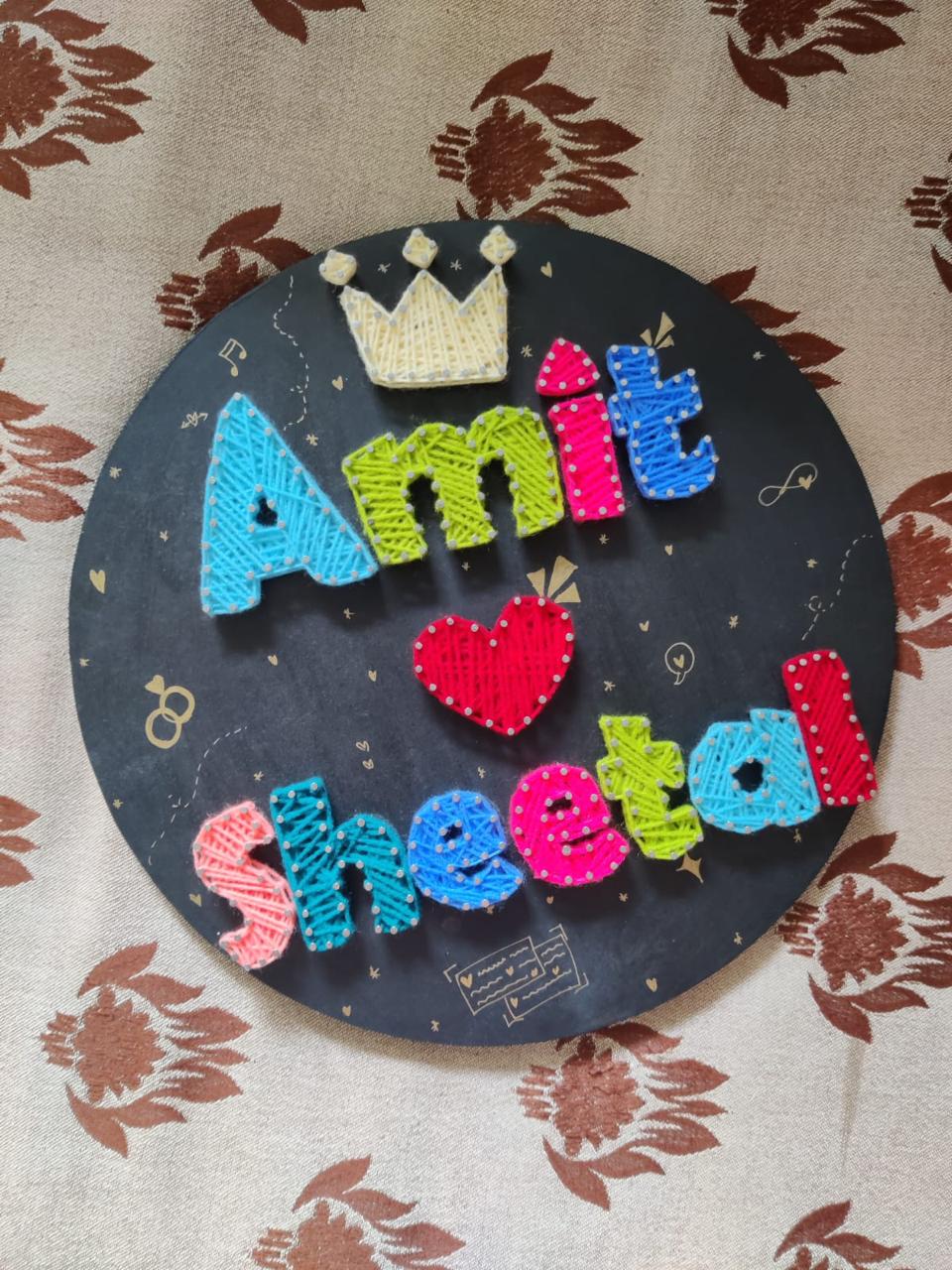 Celebrate your unique bond with Love Lines, our custom handmade name string art for couples. Each piece is thoughtfully crafted with vibrant threads, weaving both names into a beautiful and intertwined design. Perfect for anniversaries, weddings, or as a special keepsake, this personalized artwork symbolizes your shared journey and adds a touch of romance to any space.