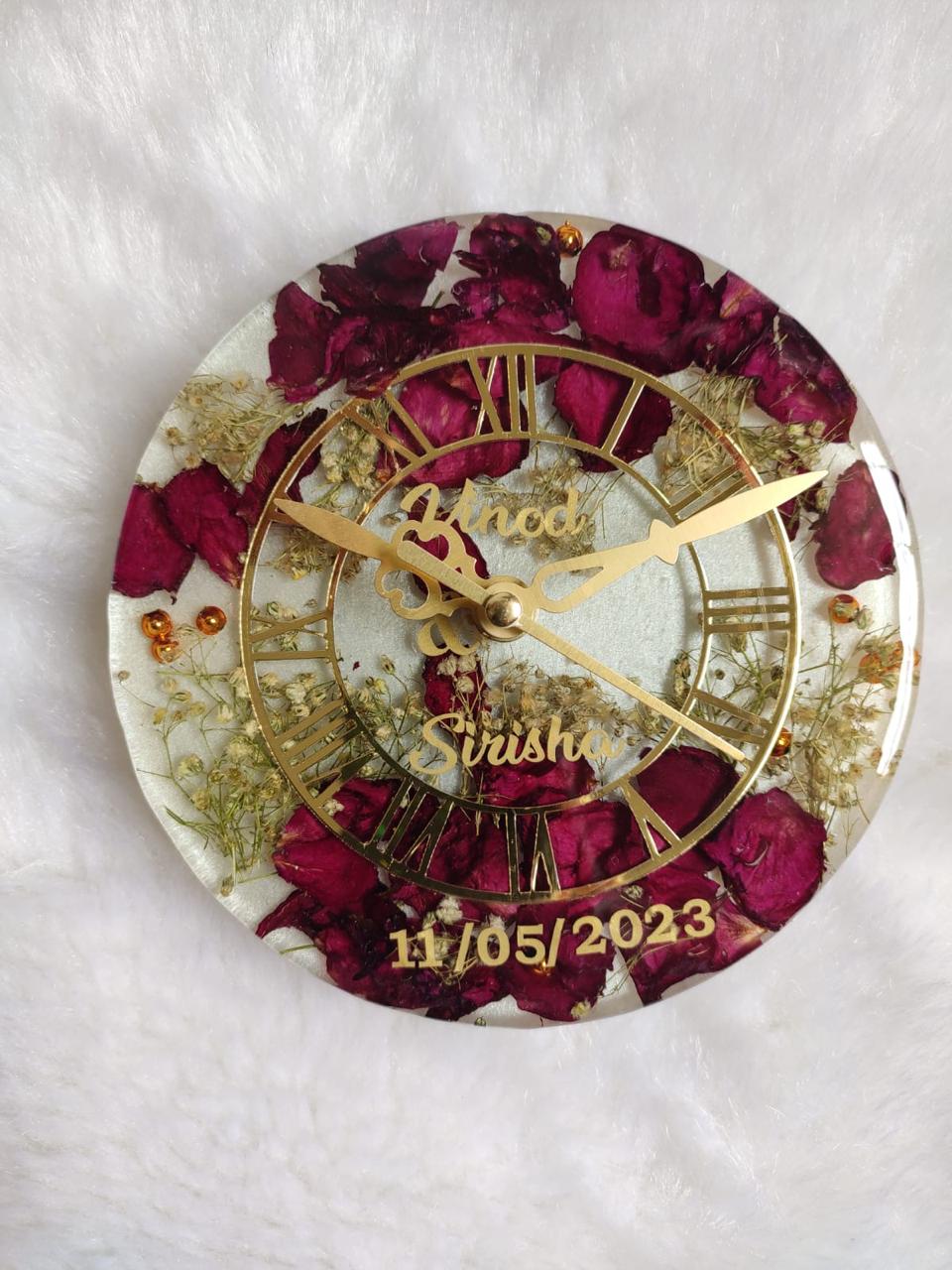Where art meets function, this elegant wall clock preserves the delicate beauty of fresh flowers in perpetuity. Each timepiece features a unique composition of carefully selected blooms, suspended in perfectly clear resin to create a window into nature's most beautiful moments. An ideal choice for those who appreciate both natural beauty and refined design.
