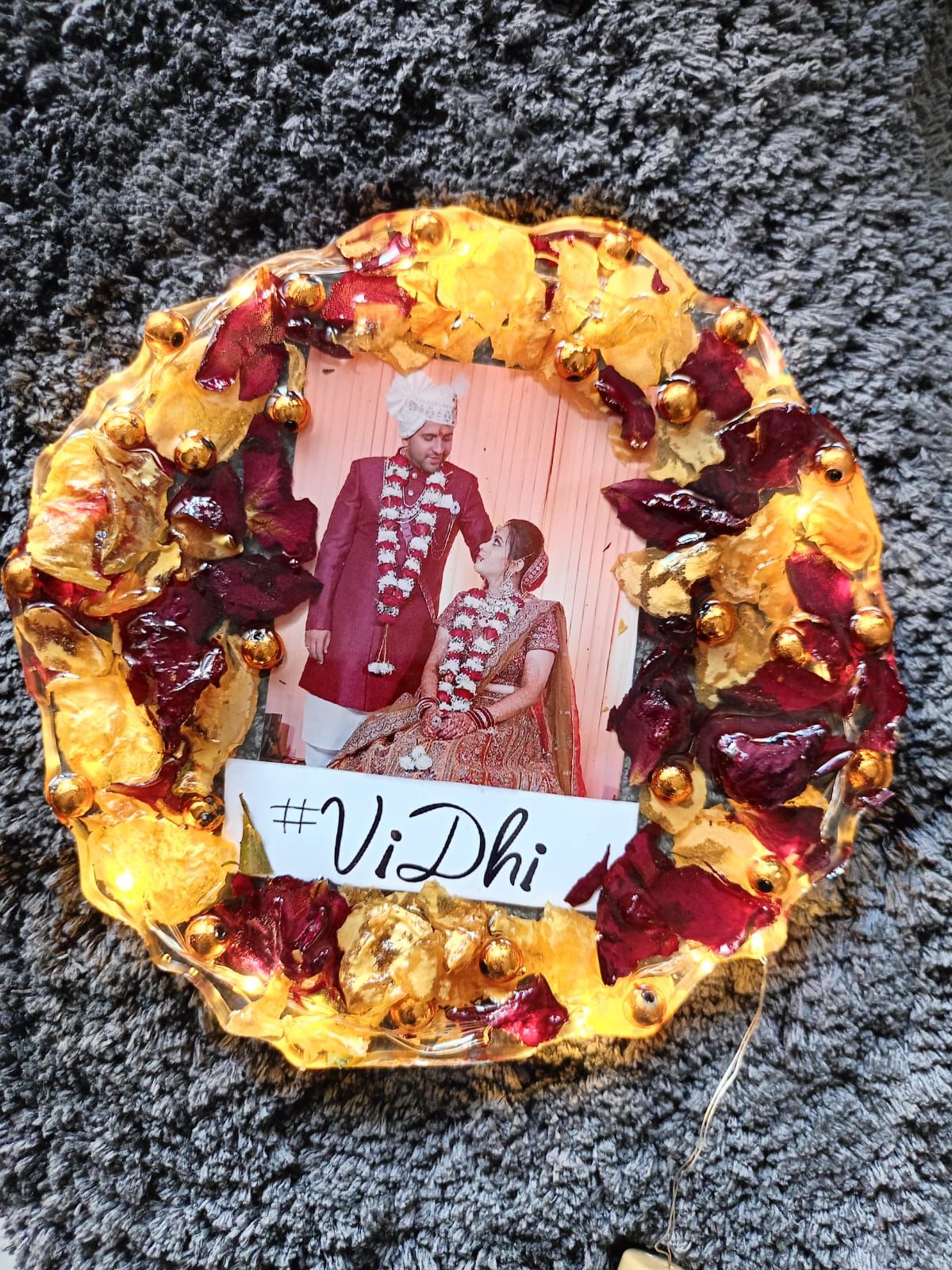 Preserve the essence of your sacred union with our epoxy varmala preservation. This special process encapsulates your wedding varmala in a clear epoxy resin, creating a stunning and everlasting keepsake. Each flower and thread is meticulously arranged and secured, ensuring that every detail is beautifully preserved.