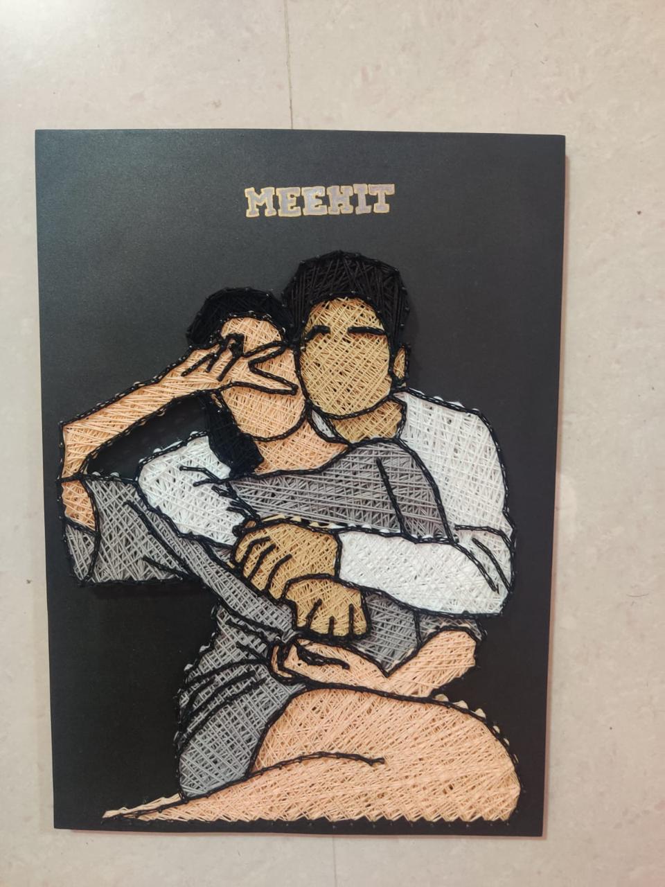 Turn names, quotes, and designs into striking wall décor with our handcrafted string art. Each piece is created by wrapping colorful thread around precisely placed nails on a wooden base — making every artwork a beautiful blend of creativity and craftsmanship.