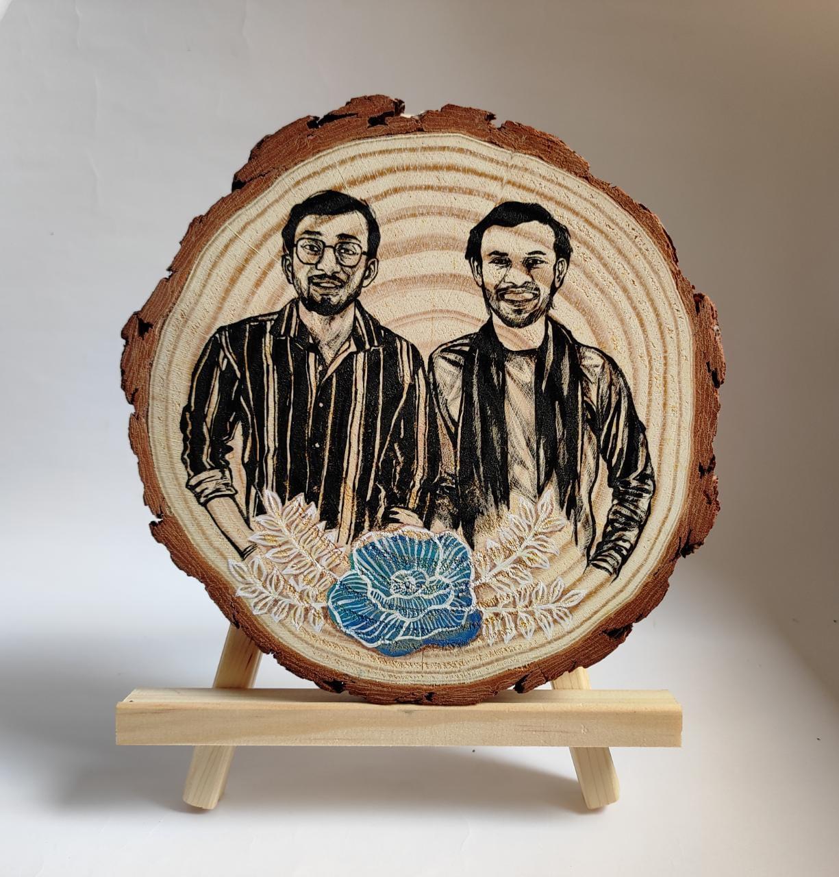 A meticulously hand-sketched portrait adorning a wooden lock, capturing the watchful presence and protective spirit of a guardian. "Within the sturdy embrace of this lock lies the silent sentinel, watching over with unwavering devotion. 'Guardian's Gaze' protects more than just secrets."
