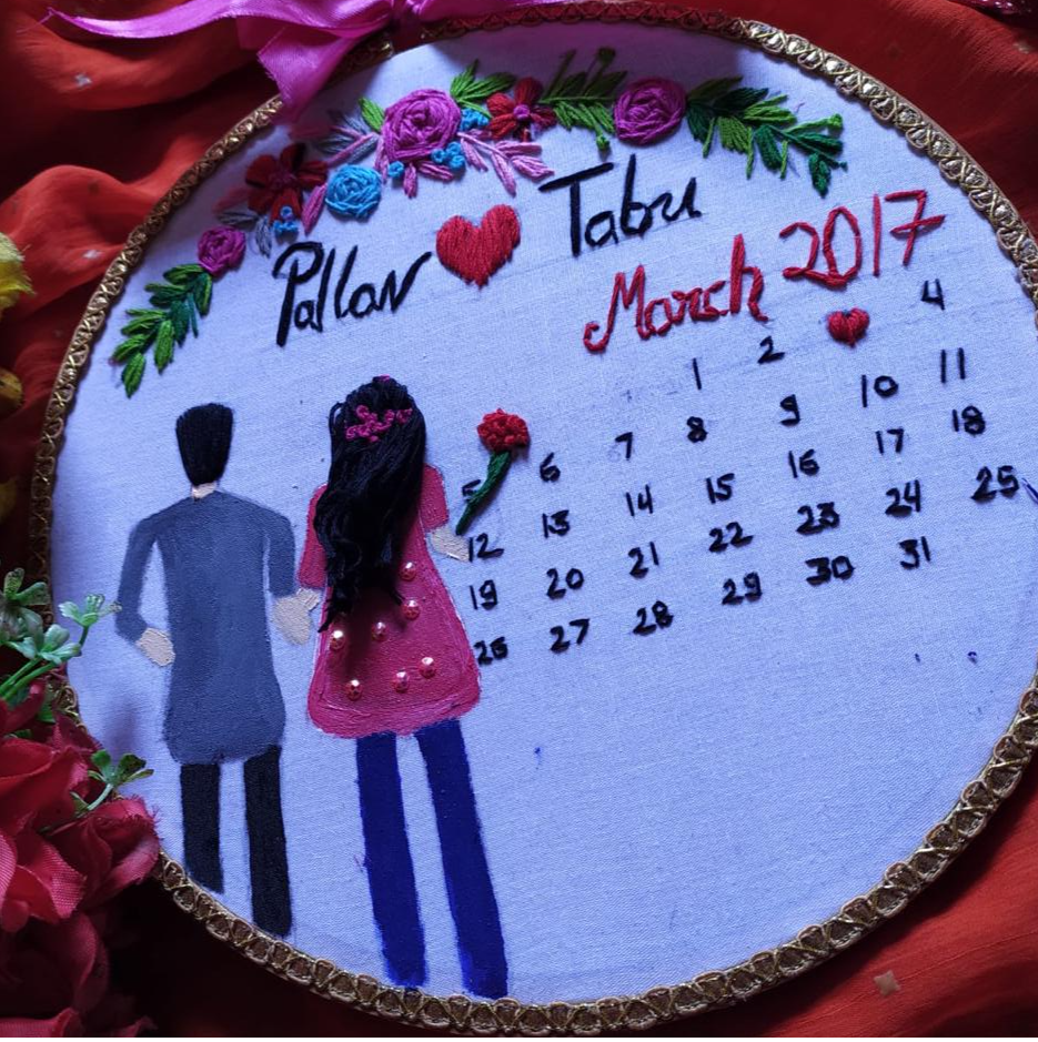 An elegant embroidered hoop that represents the harmony and deep connection between two souls, meticulously stitched with love